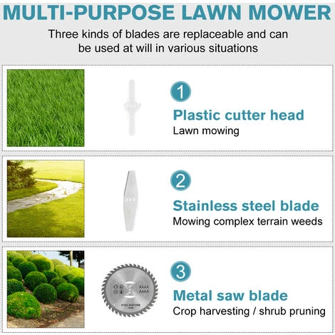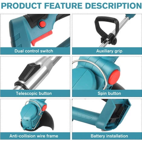 -Regolazione multi-angolo della testa di taglio, adatta a diverse scene, falciatura, potatura e greening, è più conveniente da usare, ed è più conveniente aumentare il pulsante di regolazione dell’angolo