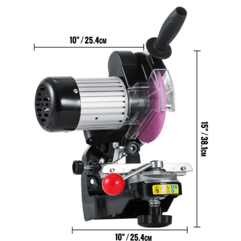 - 【Morsa inclinabile e mole abrasive】 – La morsa inclinabile sugli affilatrici per motoseghe è adatta per frese a scalpello e semi-scalpello. E le grandi mole da 5,5” possono aiutarti ad affilare la catena in modo più efficiente.