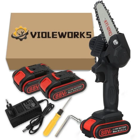 – Motosega elettrica ricaricabile, leggera e portatile, batteria a lunga durata, nessun danno alla corteccia.