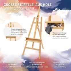Cavalletto Treppiedi Per Pittura Disegno Arte Stand Regolabile 162-240 Cm Legno