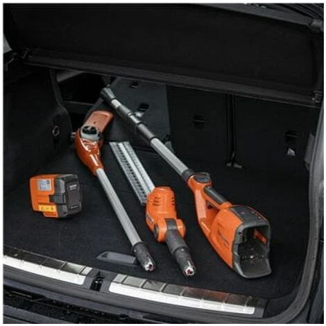 Potatore ad asta a batteria Husqvarna 120iTK4-P con prestazioni paragonabili a un prodotto a scoppio, ma senza emissioni dirette e rumore sensibilmente ridotto. Questo potatore Husqvarna 120iTK4 è un prodotto con impugnatura telescopica su cui è possibile montare un potatore o una taglia siepi. Questo rende il prodotto estremamente versatile e utilizzabile per diversi tipi di lavori. Dotato di un tubo telescopico con un raggio d’azione fino a 4 metri.