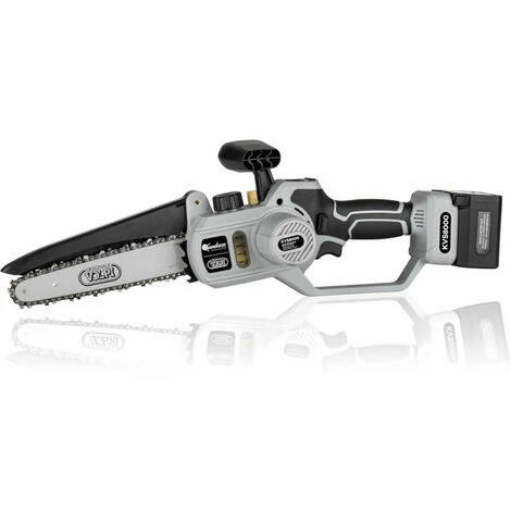 Il potatore KVS8000 dispone di doppio interruttore di sicurezza, catene da 1/4″ con copertura protettiva e barra da 8″, impugnatura ergonomica con protezione per la mano e di una seconda impugnatura supplementare per lavorare a due mani: dotazioni essenziali per consentire un lavoro in sicurezza. Grazie all’apposito display si può visualizzare la carica della batteria e il numero delle ore di lavoro, per avere sempre sotto controllo le operazioni di potatura. Serbatoio dell’olio integrato e livello visibile dall’esterno, con lubrificazione automatica della catena. È dotato di due batterie cordless al litio da 21,6V 4,0Ah ricaricabili e ad innesto rapido. Viene fornito inoltre con un carica batteria a tre vie, kit di riparazione, copri barra e una comoda valigetta dove riporre in modo ordinato tutti gli elementi, per un trasporto semplice e sicuro.