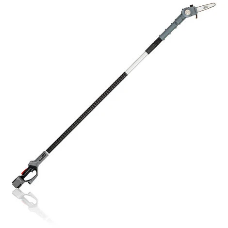 La struttura pratica ed ergonomica è caratterizzata da asta telescopica con testa orientabile e da un motore brushless da 950 W, potente ed affidabile, alimentato da 2 batterie al litio da 21,6 V 4,0 Ah ricaricabili incluse, che garantiscono una durata di funzionamento in base al tipo di utilizzo, ovvero varia in base al diametro di taglio, al tipo di legno e alla velocità dell’operatore.Â