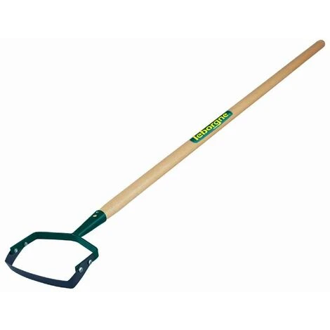 2 strumenti in 1: lato; lama (raschietto) per tagliare giovani germogli sotto il colletto e 1 lato; lama corta per tagliare piante dure e raccogliere sfalci d’erba. uso intensivo. Dotato con manico in legno traforato.
