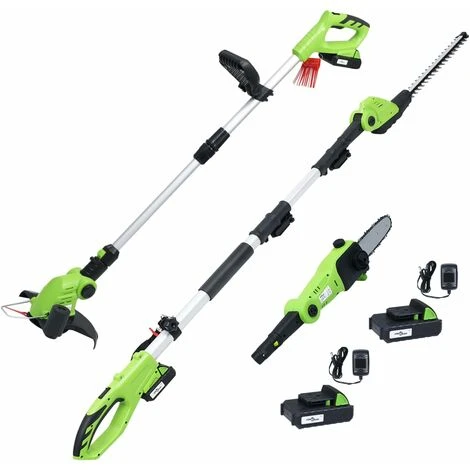 - Potenti tagliasiepi e sega ad asta: Il tagliasiepi e la sega ad asta sono perfetti per tagliare siepi, arbusti e cespugli in modo rapido ed efficiente.