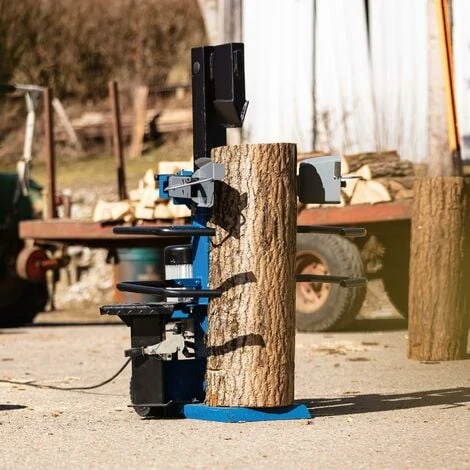 Lo spaccalegna lavora senza sforzo legno duro e tenero. La staffa di sicurezza e il funzionamento a due mani garantiscono condizioni di sicurezza ottimali.