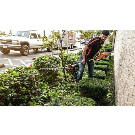 Barra di taglio articolata per una maggiore versatilità e un lavoro meno faticoso. Regolabile in 7 posizioni per una comoda posizione durante il taglio di lati, angoli, aree inaccessibili o siepi con altezze diverse.