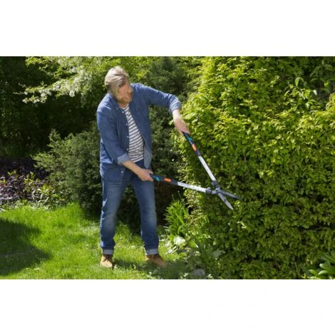 Le impugnature ErgoTec dei manici delle cesoie per siepi sono ben bilanciate e hanno una forma ergonomica, che si adatta perfettamente alle tue mani in ogni posizione; i morbidi cuscinetti ammortizzatori proteggono le articolazioni e le mani durante il lavoro, rendendolo più confortevole e prolungato. Infine, i bracci in alluminio rendono le cesoie per siepi TeleCut leggere ma resistenti, consentendo di risparmiare fatica e garantendo una lunga durata delle forbici.